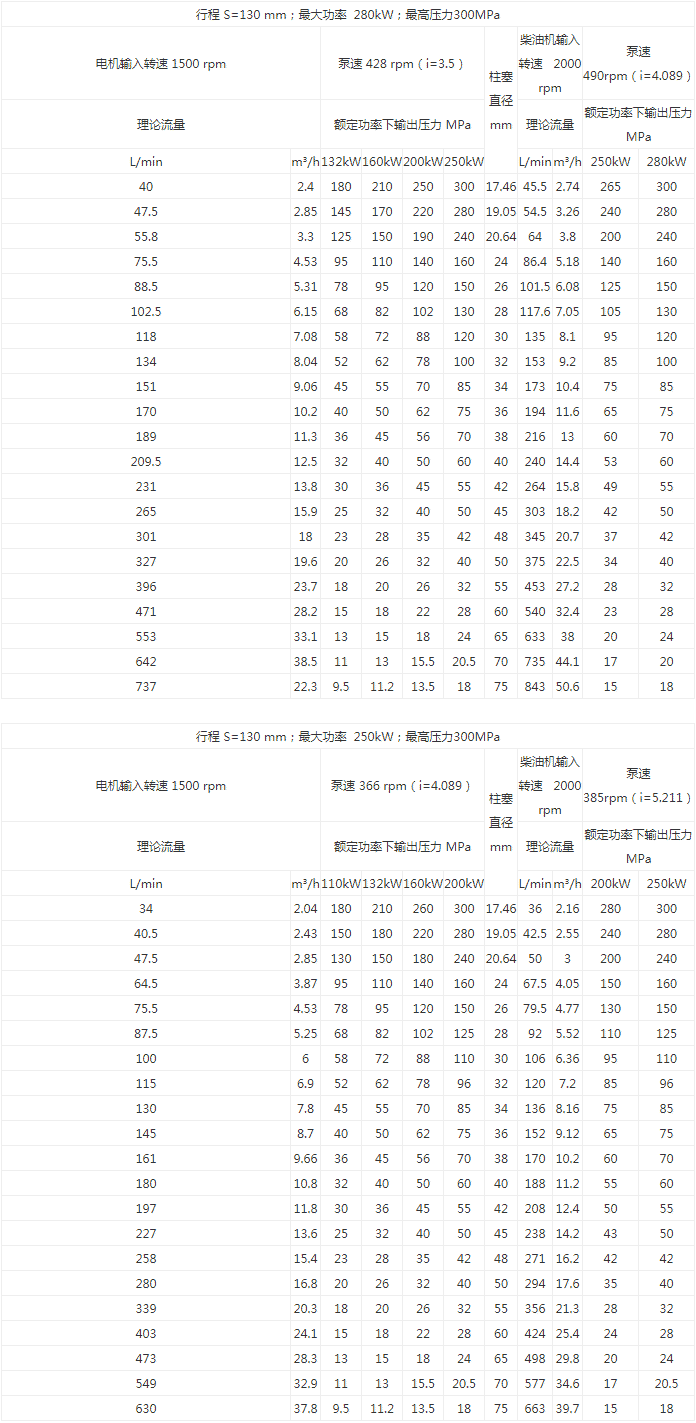 最大流量: 840 L/min 最大功率: 280 kW